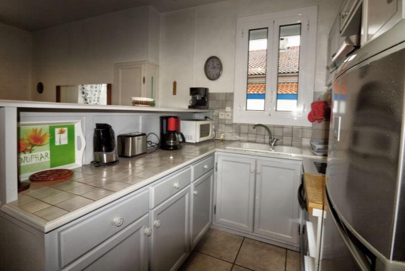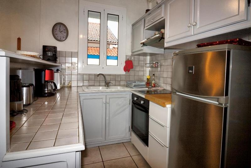 Grande terrasse, salon de jardin, chaises, Plancha électrique, chaises longues, parking privé.