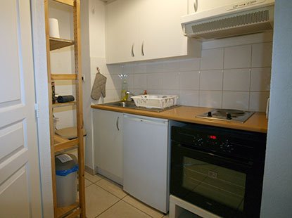 Four, micro ondes, 2 plaques cuisson électriques, réfrigérateur-congélateur, hotte aspirante, cafetière, grille-pain…