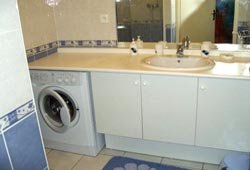 Douche, lavabo, lave-linge.