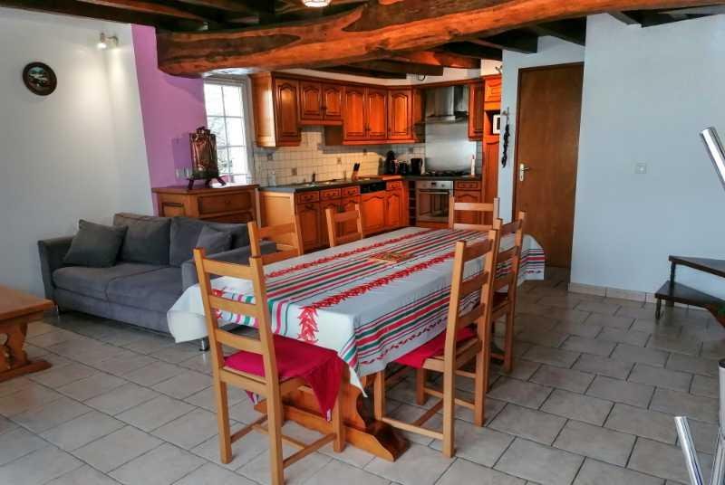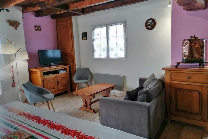 Gîte 4/5 personnes, de style basque avec poutres apparentes, spacieux et mansardé, situé au rez-de-chaussée de la ferme, entrée indépendante.
