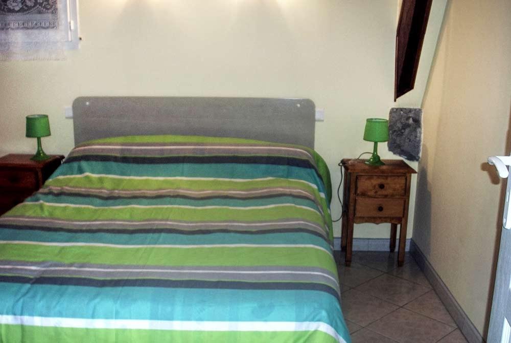 1 lit de 140 avec traversins et une couette (2 oreillers dans le placard),2 tables de chevet, 1 chaise,1 penderie placard de rangement.