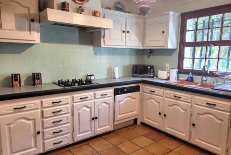 Réfrigérateur congélateur, micro-ondes, lave-vaiselle, four, 4 plaques de cuisson gaz, hotte aspirante, vaisselle, cafetière, bouilloire, grille-pain, machine espresso, TV …